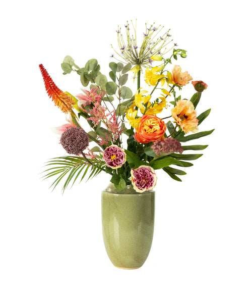 Dit prachtige boeket houdt het hele jaar door zijn vorm en kleur. En het fijne is dat het geen onderhoud nodig heeft. Hét perfecte centerpiece, geschikt voor iedere ruimte.